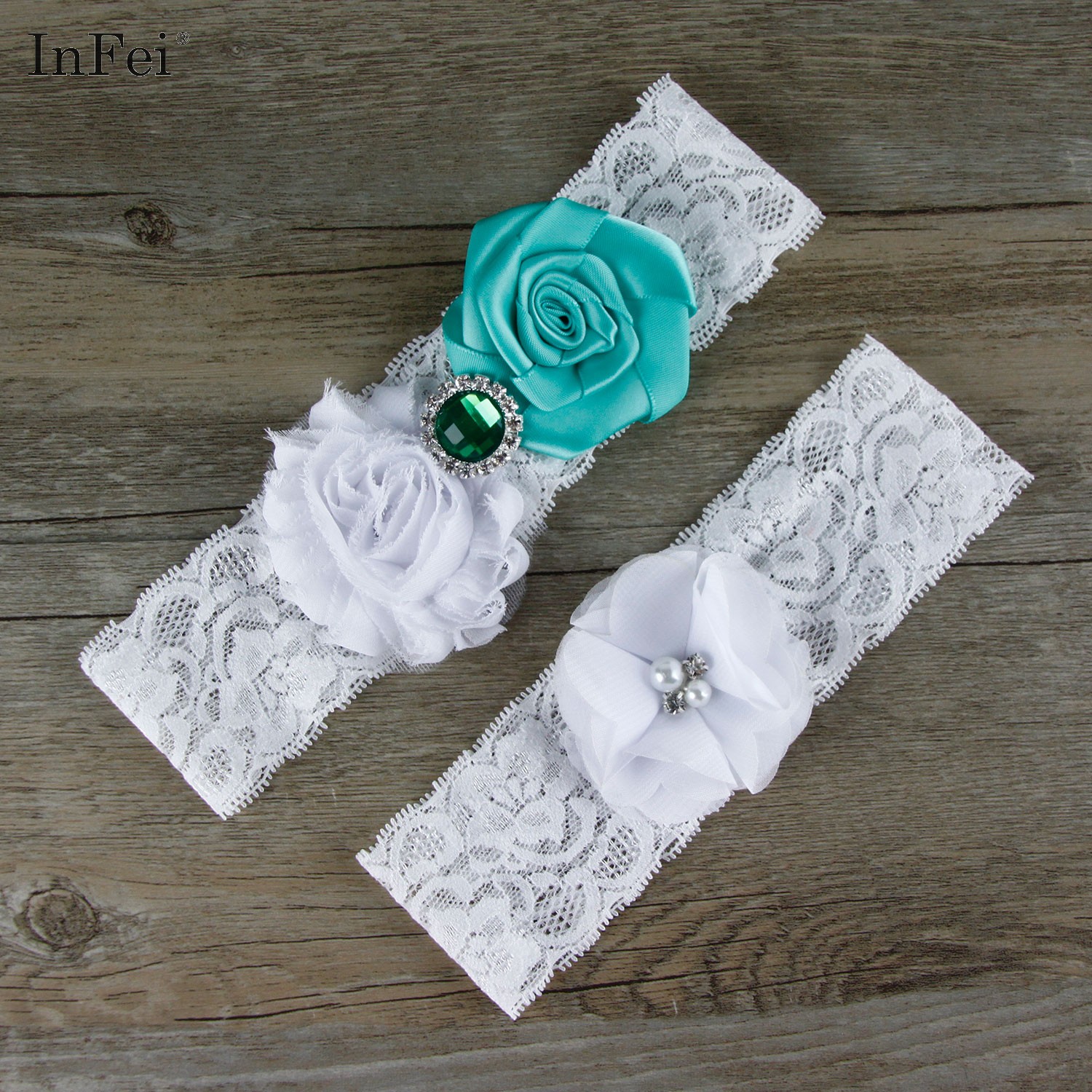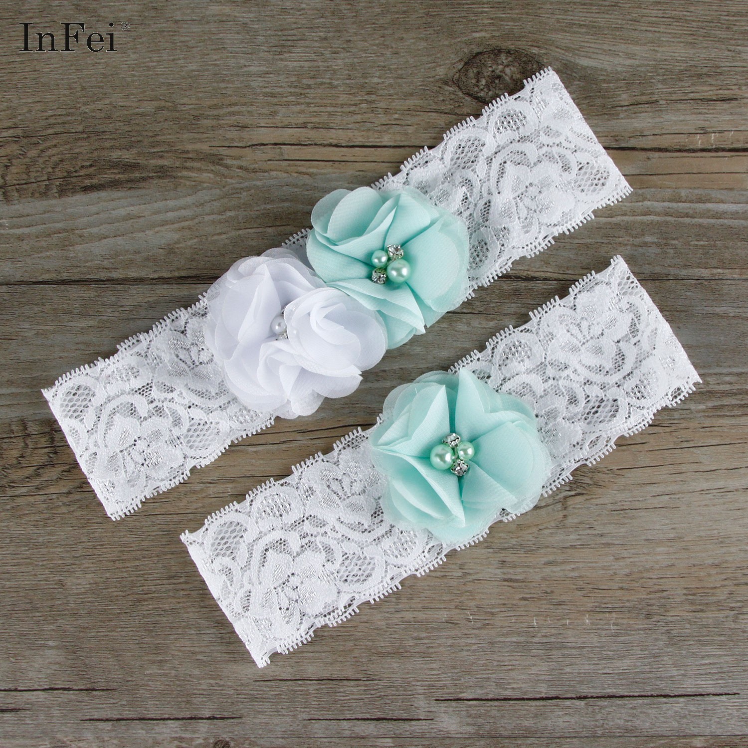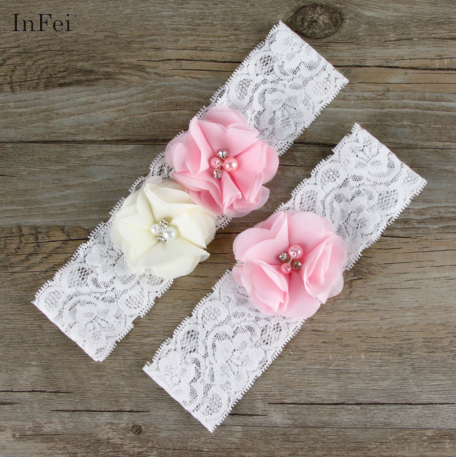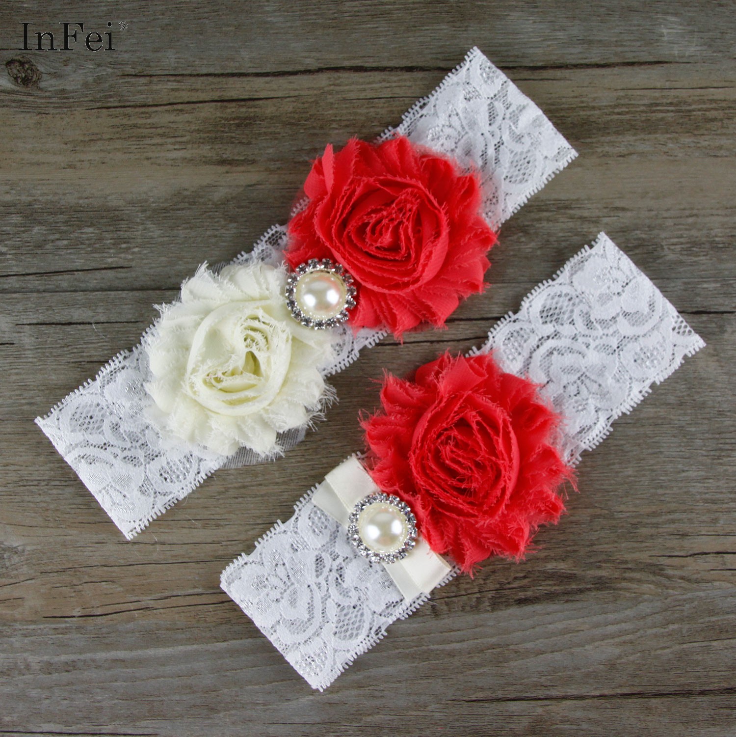 This garter set is 2pcs,includes one to keep and one to toss. Each garter is made with 5cm width stretched lace. The garter is made of Shabby chiffon flower,beads,lace.